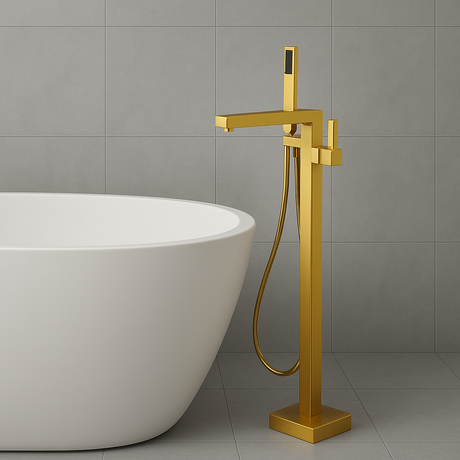 Mirage free standing bathtub mixer brushed brass gold
