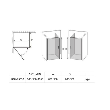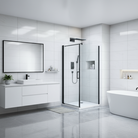 Marino Pivot Door Shower Enclosure Matte Black 900 x 900