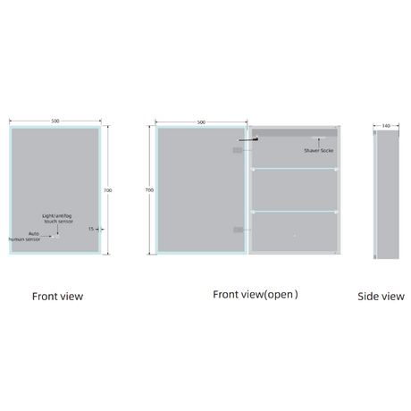 Yora vertical alaminum front lit mirror cabinet single door 500mm x 700mm